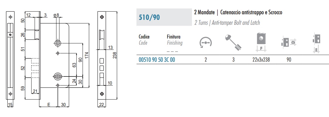 SERRATURA SICUREZZA DOPPIA MAPPA INFILARE 2 MANDATE SAB art. 510/90